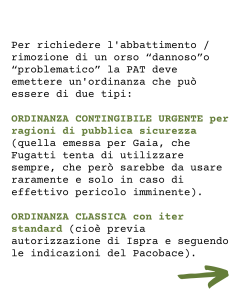 Per richiedere l’abbattimento / rimozione di un orso “dannoso”o “problematico” la PAT deve emettere un’ordinanza che può essere di due tipi:
