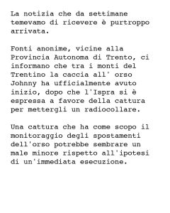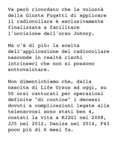 Va però ricordato che la volontà della Giunta Fugatti di applicare il radiocollare è esclusivamente finalizzata a facilitare l’uccisione di orso Johnny.