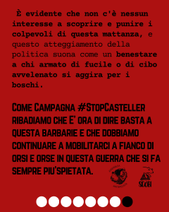 COME CAMPAGNA #STOPCASTELLER RIBADIAMO CHE È ORA DI DIRE BASTA A QUESTA BARBARIE E CHE DOBBIAMO CONTINUARE A MOBILITARCI A FIANCO DI ORSI E ORSE IN QUESTA GUERRA CHE SI FA SEMPRE PIÙ SPIETATA.